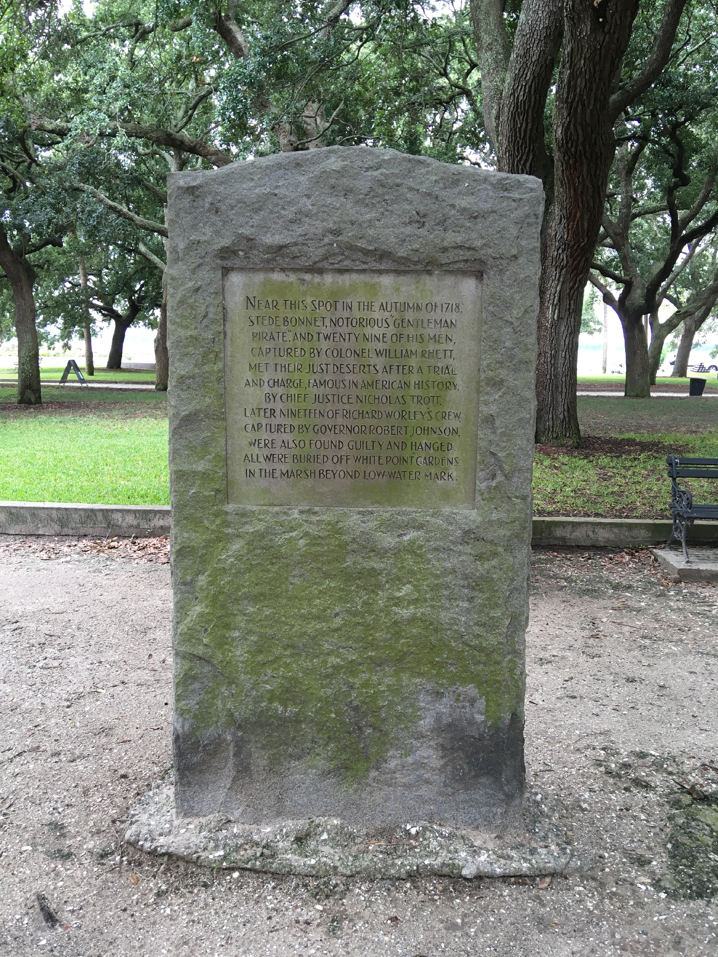 White Point is now a beautiful and relaxing tree covered garden. In the 1700s it was the site of the hanging of pirates and their immediate burial just below the high water line in unmarked graves.
