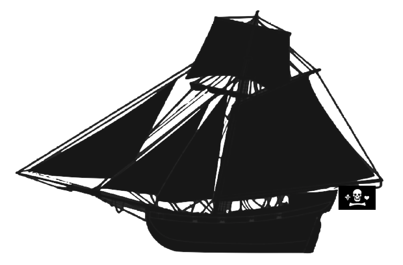 The Jollly Roger is the most popular of the pirate flags. We recognize it immediatly as a skull and crossbones and we still use it today as a warning of possible death.